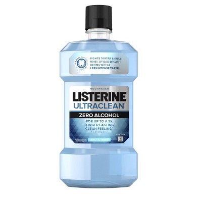 Amazon Com Listerine Ultraclean Zero Alcohol Tartar Control Mouthwash Oral Rinse To Help Fight Bad Breath And Tartar For Cleaner Naturally White Teeth Less Intense Arctic Mint Taste 1 L Health